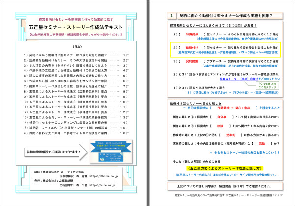そこで、話の組み立てに最も大きな困難が伴いがちな《人事労務課題への取り組み動機付けセミナー》をテーマに取り上げ、そのストーリーの効率的な作り方と効果的な話し方を《五芒星セミナー・ストーリー作成法》として、ご提供することと致しました。