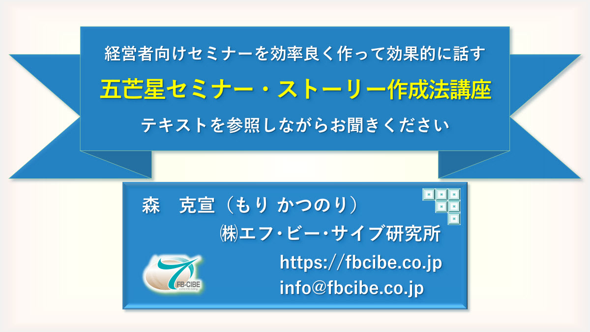 そこで、話の組み立てに最も大きな困難が伴いがちな《人事労務課題への取り組み動機付けセミナー》をテーマに取り上げ、そのストーリーの効率的な作り方と効果的な話し方を《五芒星セミナー・ストーリー作成法》として、ご提供することと致しました。